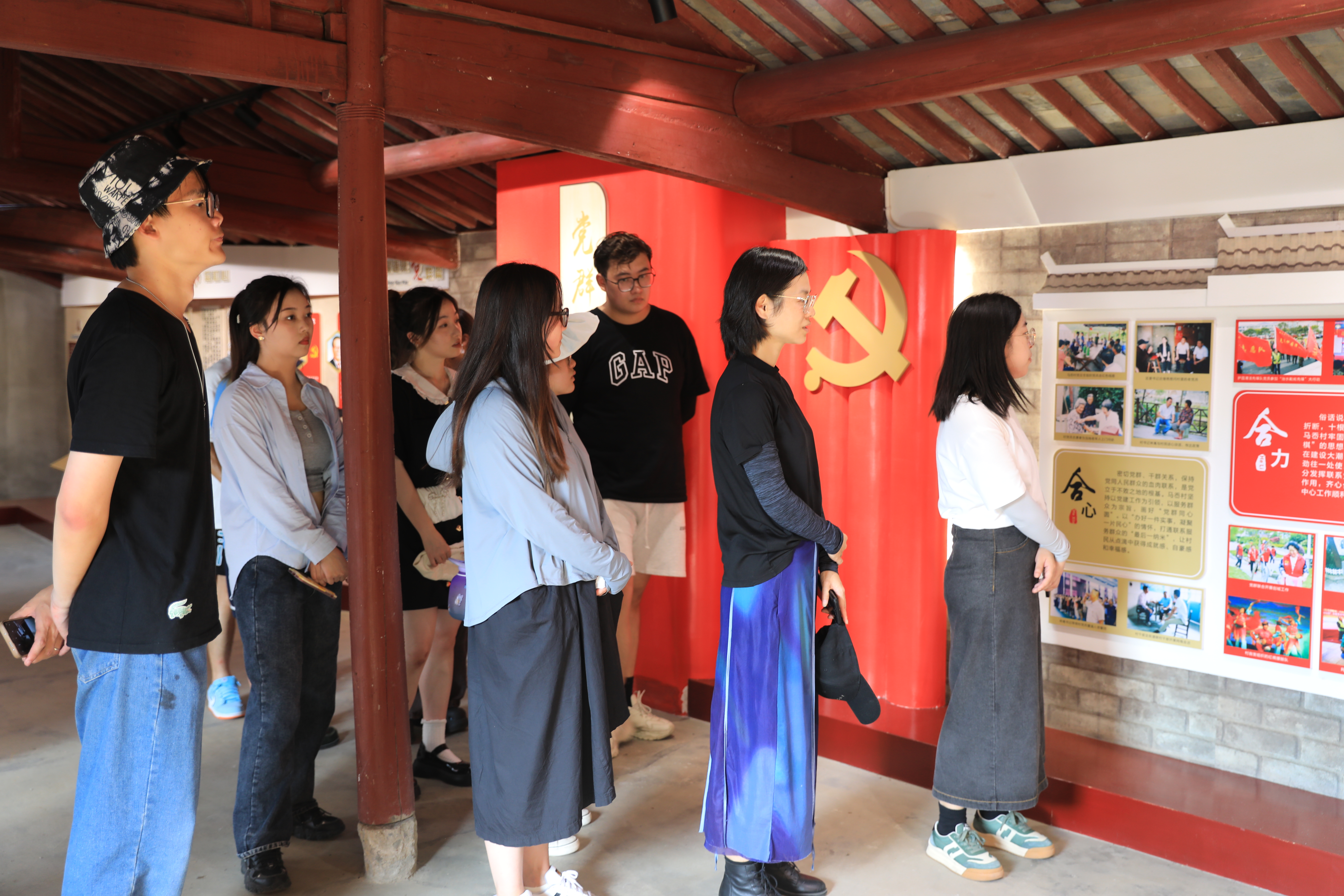 手工艺学院暑期社会实践团队走进“马岙乡村善治学堂”,感悟党建引领基层治理以及马岙悠久的历史、革命斗争的故事。