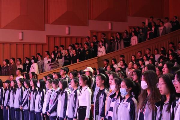 开学典礼在庄严的国歌声中拉开序幕,师生们歌声嘹亮,气势恢宏。