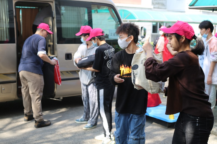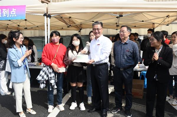 同学们前往“立志园”、“立业园”扫码办理入住手续,领取“新家”钥匙。