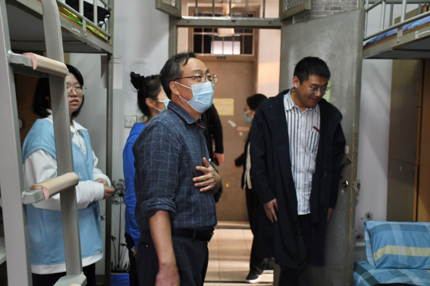 领导班子成员还走访新生公寓,了解新生的住宿环境和入住感受,排查宿舍安全隐患,叮嘱同学们疫情当下做好个人防护,保持寝室卫生整洁。
