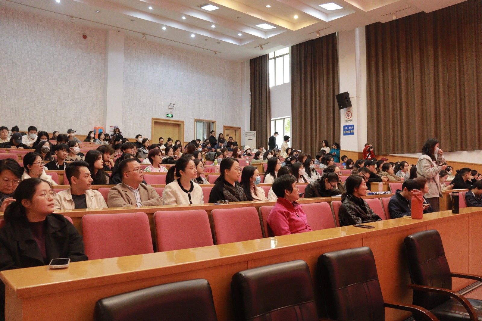 一句 “没有共产党就没有新中国”将现场气氛推向了高潮,洪亮的嗓音为我们揭开了宣讲。闻人柯婷说,唱红歌意在中华民族面临危机时,激发群众的民族意识、爱国意识。她积极用一个个历史故事呼唤大家要扛起历史使命。