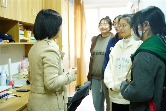 活动现场,党员教师还为结对寝室填写党员结对共建卡,为寝室学生送上党员寄语和祝福。仪式结束后,全体党员分别前往结对寝室走访查看,向学生了解近期学习、生活等的收获和问题,收集、帮助学生解决遇到的困难,并为宿舍学生宣讲党的二十大精神。