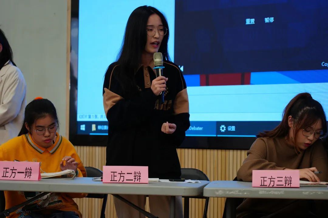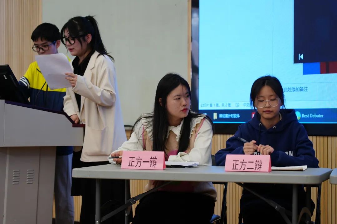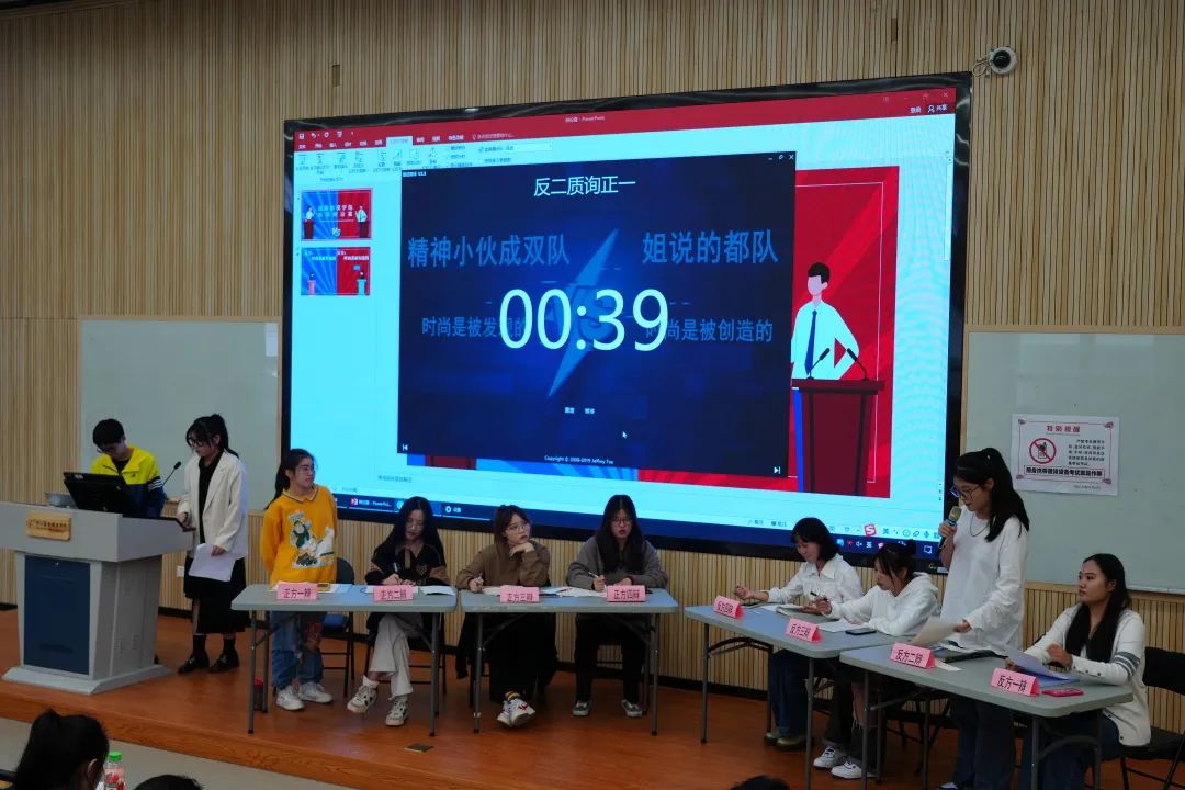 在激烈的辩论过程中,双方分秒必争,在有限的时间里提出有力论点、陈述具体论据,并对对方论点提出质疑。