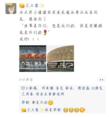 话剧《1977》以恢复高考为大背景,通过动人心弦的故事,精湛的置景和灯光,为观众呈现了一场震撼的视觉盛宴。在那个时代,北大荒的青年们把握住恢复高考的机会,在土里刷题,在泥里读书,在雪地里赶考,在不平凡的岁月里绽放自己的不平凡的青春。作为刚经历过高考的大一新生,我的心中更为澎湃。很难想象父辈们当时是如何经历高考的,因为在当下,我们是幸运的、幸福的,我们享受着教育公平带来的福利。此外,我在话剧《1977》中得到了共鸣——无论哪个年代,知识永远是改变命运的最有力武器!作为影视编导专业的学生,话剧《1977》不仅激励着我要不断加强自身的专业学习,也让我对自己的社会价值有了新的思考。在未来的三年里,我要努力学习专业知识,争取成为一名有理想的文艺工作者。