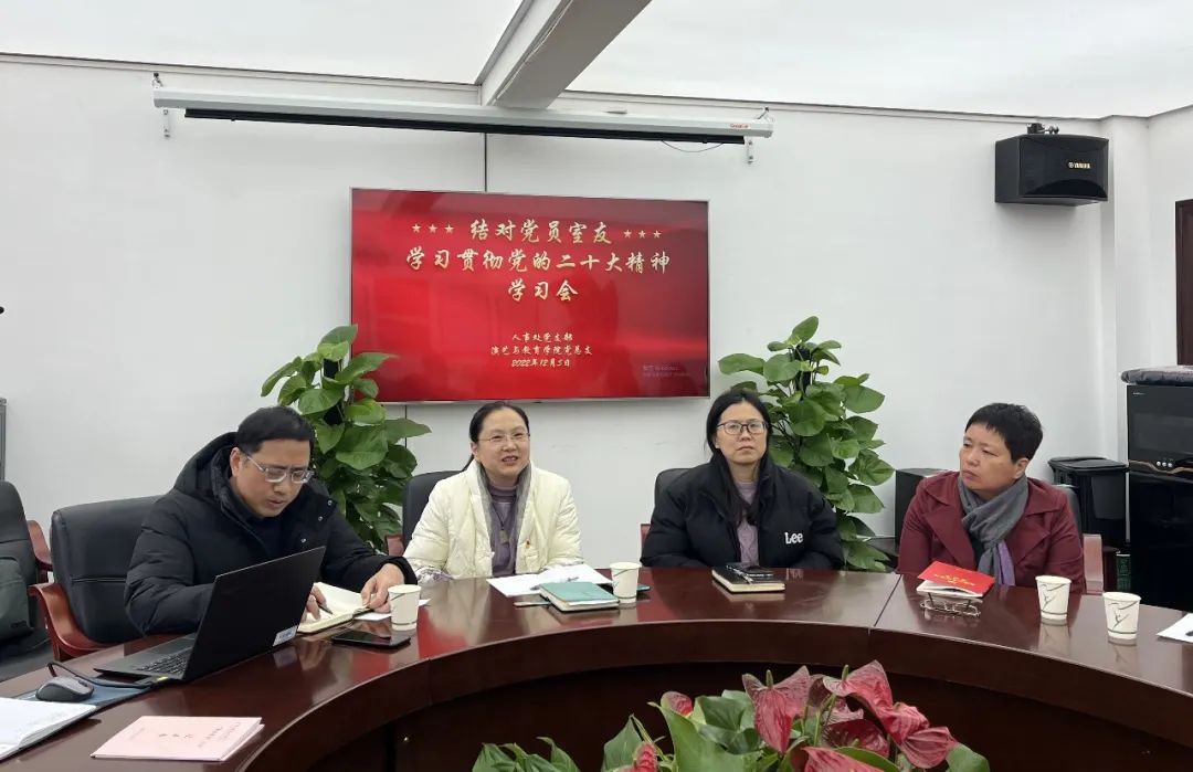 人事处党支部党员室友与结对寝室学生开展党的二十大精神学习会。会上,人事处党支部书记戴闵青从过去五年的工作和新时代十年的伟大变革、开辟马克思主义中国化时代化新境界、新时代新征程中国共产党的使命任务、全面建设社会主义现代化国家的重大任务等十五个方面深入浅出的解读了党的二十大报告,并围绕学生的学习、生活遇到的问题进行了座谈交流。