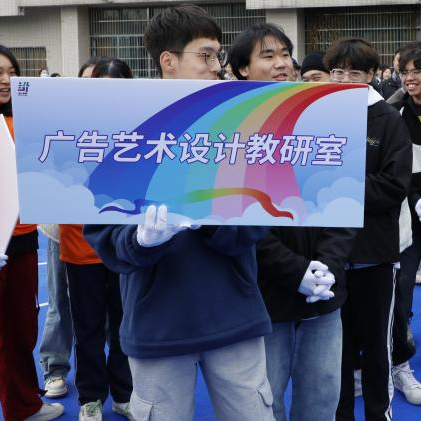 伴随着激昂的《运动员进行曲》,设计学院首届趣味运动会的开幕仪式以师生拔河比赛的形式启动。由设计学院舞台艺术设计与制作专业、服装与服饰设计专业、广告艺术设计专业、动漫设计专业、环境艺术设计专业、造型基础(附中)专业师生以及“七号舍友”代表组成的七支拔河队伍摩拳擦掌,各展风采,嘹亮地喊出属于他们的口号。