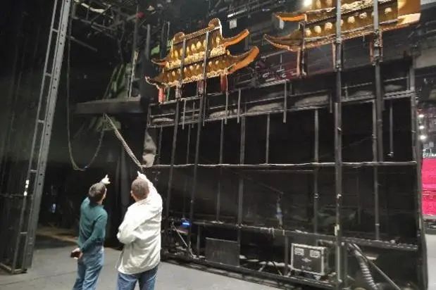 同学们走进演出《宋城千古情》的一号剧院,分成灯光、音响、舞台机械三个小组,轮流跟随剧场技术人员观摩《宋城千古情》灯光、音响及舞台机械设备的演示效果、操作原理,并动手体验。
