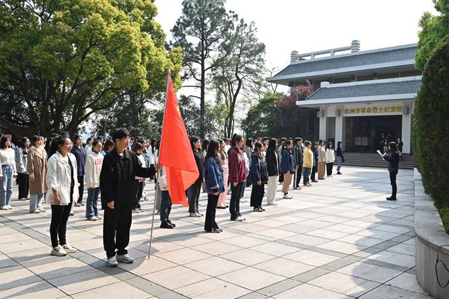 为深入贯彻学习党的二十大精神,缅怀革命先烈、传承红色基因,4月8日,浙江艺术职业学院党校第41期培训班学员160余人在党校校务委员、党校教研部主任、马克思主义学院副院长胡卓群的带领下赴杭州市革命烈士纪念馆举行“清明祭英烈 共筑中华魂”活动。