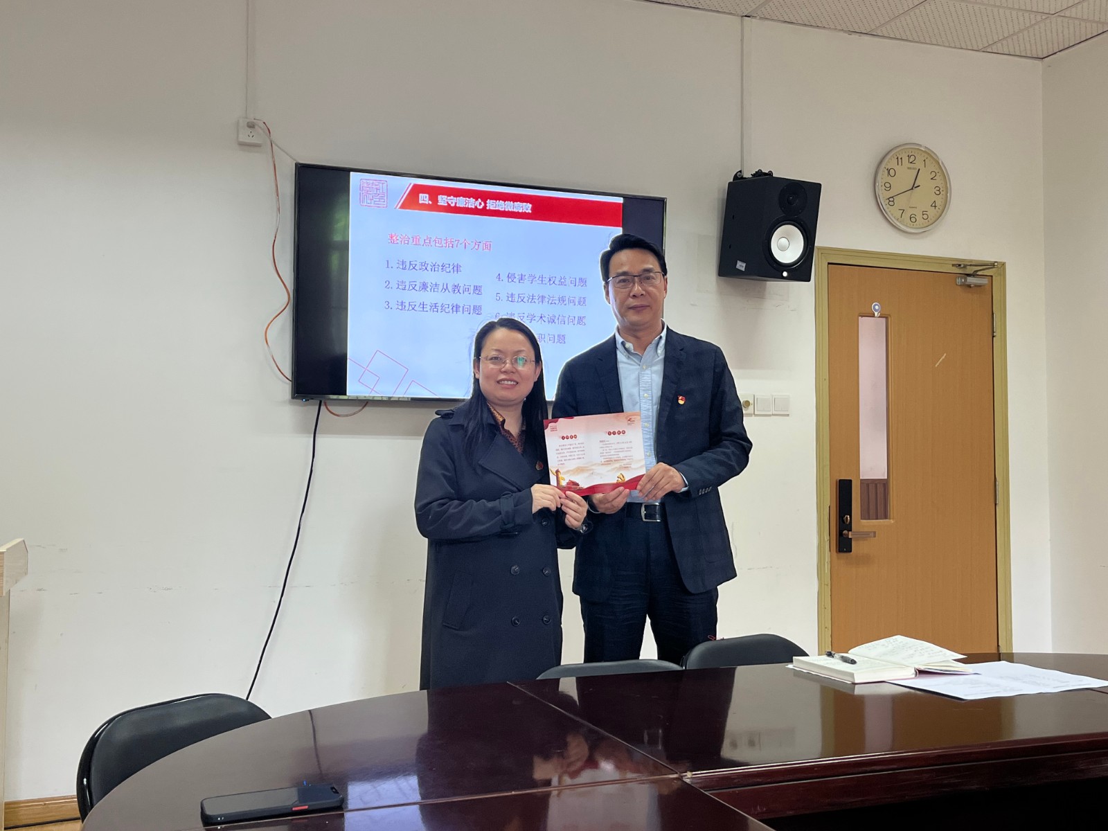 集体学习期间,党总支为2位党员过政治生日,部分党员还分享了主题教育必读书目的学习心得。专题党课中,党支部书记们还专门就师德师风、教风学风、廉洁作风建设进行部署要求,并传达学校“以案为鉴明纪法、勤廉并重树标杆”集中警示教育季工作要求,观看《永远吹冲锋号》视频资料。各党支部还讨论了主题教育特色自选活动实施方案。