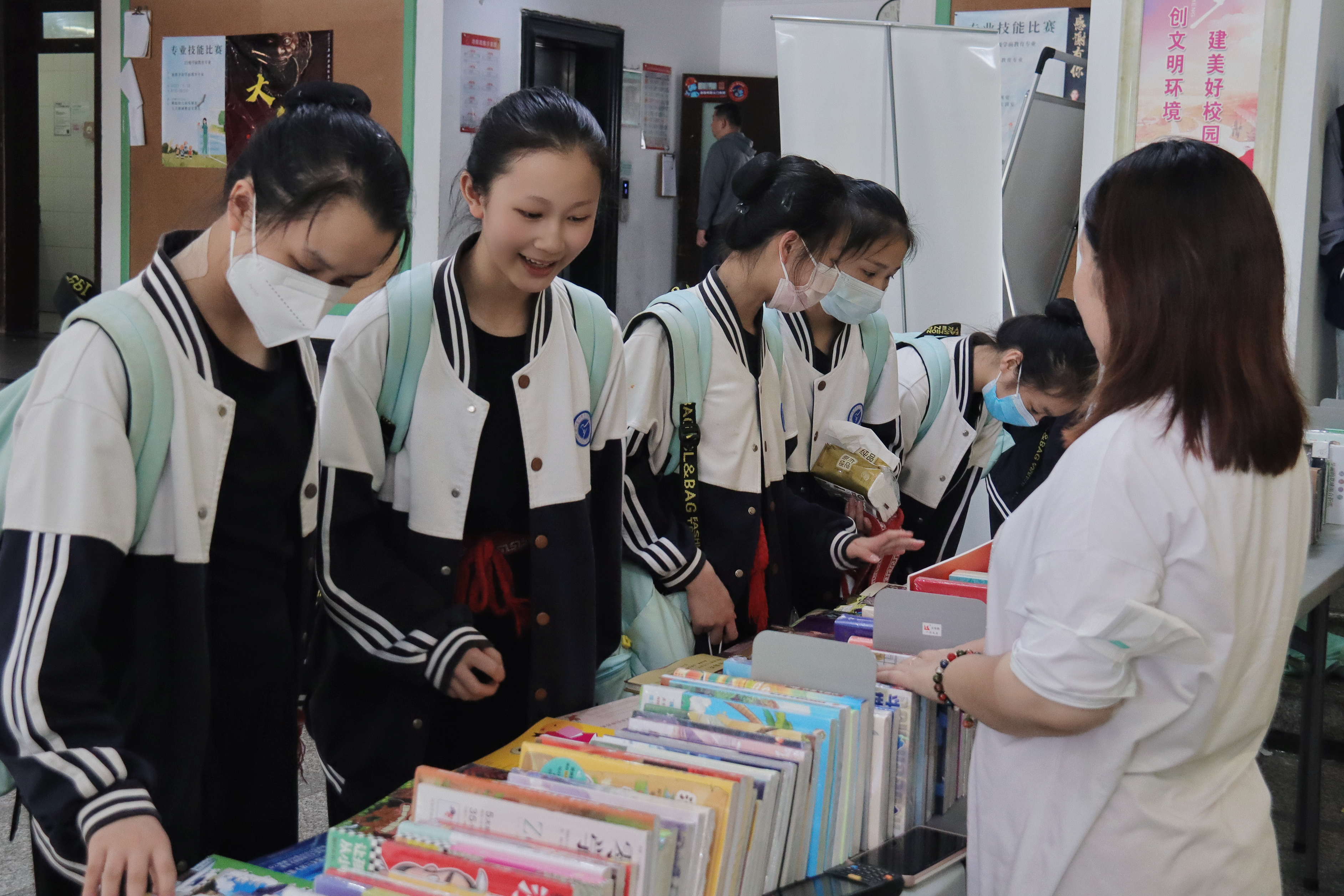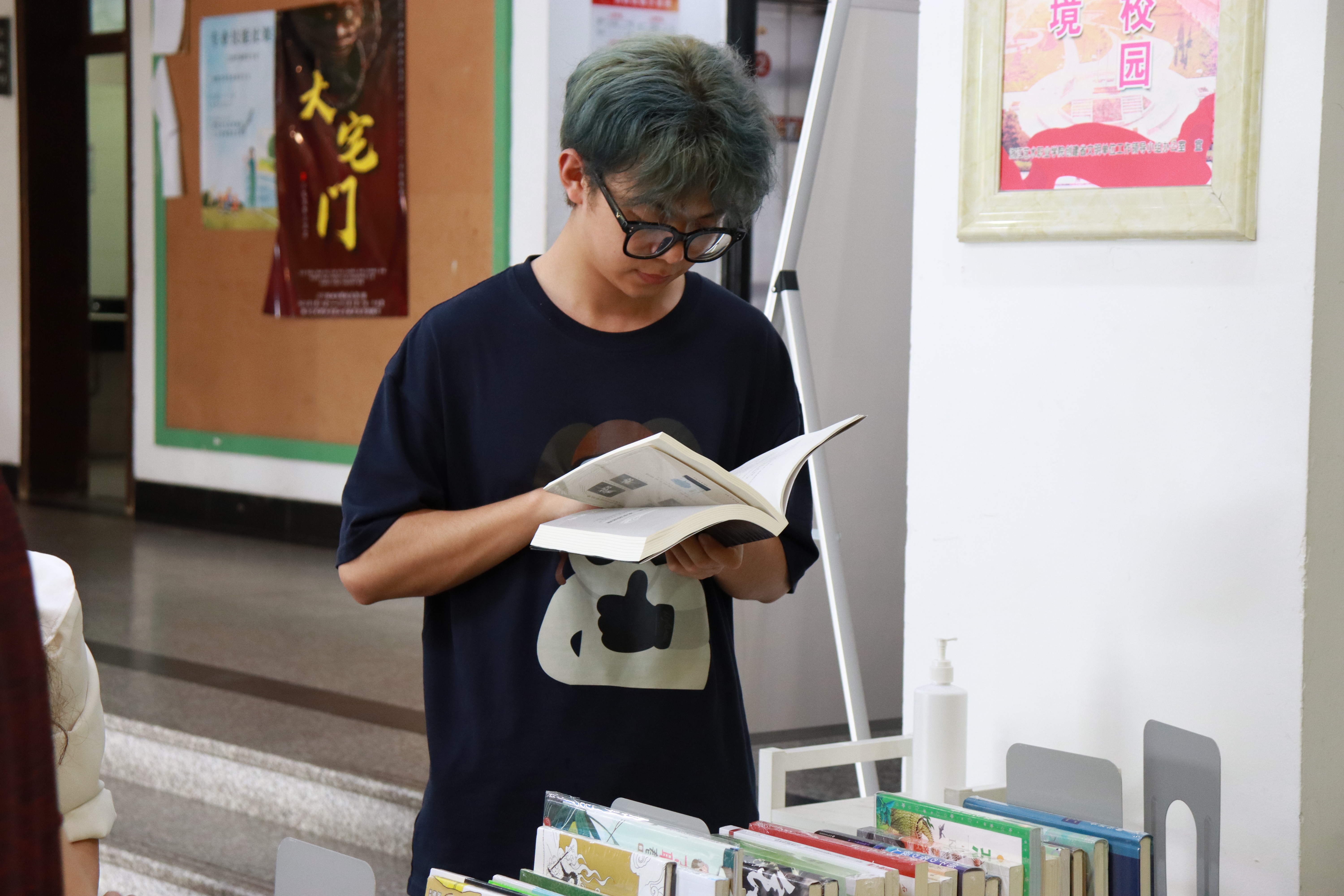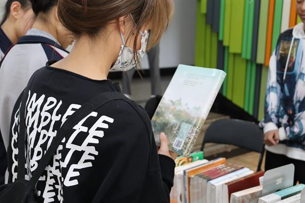 瓢泼大雨未能阻挡我校师生读书的热情。图书荐购活动吸引了众多师生前来,现场弥漫着浓郁的书香之气。师生们在展桌前驻足,拿起一本本书小心仔细翻阅,时而笑意盈盈,时而眉头紧锁,仿佛进入了一个别开生面的世界。
