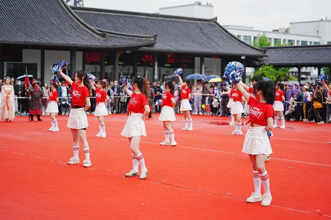 20位女生在每次开城前进行《oh!》舞蹈表演,彰显青春风采。9位学生参与每天3小时的影视大巡游,扮演《射雕英雄传》中的角色,其中2位女生轮流扮演黄蓉,7位男生轮流扮演南帝、北丐、东邪、西毒4个影视角色。