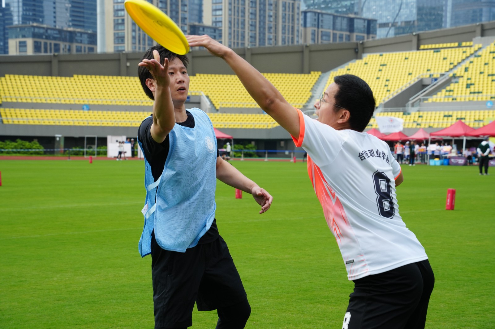 赛场上,队员们冲刺、转身、飞扑、跳跃、传盘、接盘,满腔热忱,肆意驰骋。辅导员们攻守转换,层层递进,高潮迭起。他们团结协作,配合默契,他们挥汗如雨,专注执着。他们在诠释着“盘不落地 永不放弃”的体育精神,也展示着“青春清廉 善作善为”浙艺学工风貌。