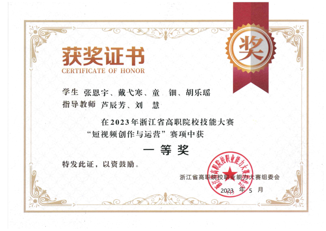 2023年浙江省高职院校技能大赛暨全国职业院校技能大赛选拔赛“融媒体内容策划与制作”“短视频制作与运营”赛项于5月21日和5月27日陆续开赛,戏剧影视学院共斩获1个一等奖、2个三等奖。