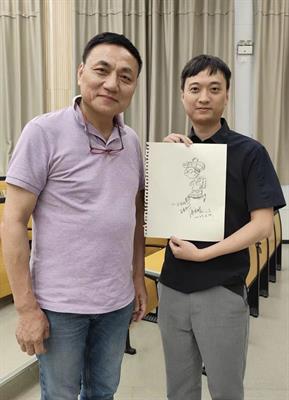 张天晓现场绘制手稿,赠与师生