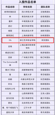 近日,由浙艺戏剧影视学院摄影摄像技术专业教师孙国虎指导,2019级摄影摄像技术专业学生郑汉、陈昱帆、傅晓琦、厉楠、陈凯琦等创作的实验短片《5%》,荣获第十九届广州大学生电影展“追梦路上”原创特别单元“优秀作品”,第五届极光之夜·大学生微电影节“最佳摄影”“最佳音效”提名。