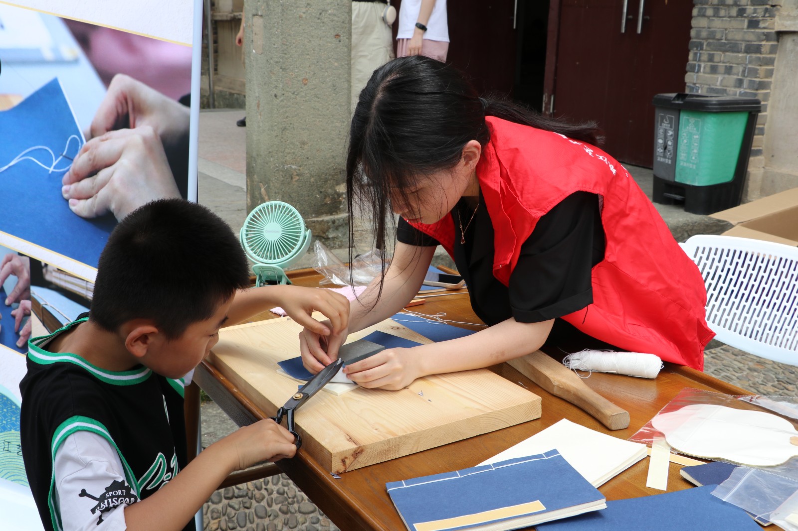 线装书是我国古代装帧形式最为广泛的装帧形式。艺小匠们现场讲授,手把手带领体验者“穿针引线”,经过裁纸、折页、齐书口、压平、打眼、穿钉、上封面、打书眼、缝线、粘签条等程序制作完成书册。