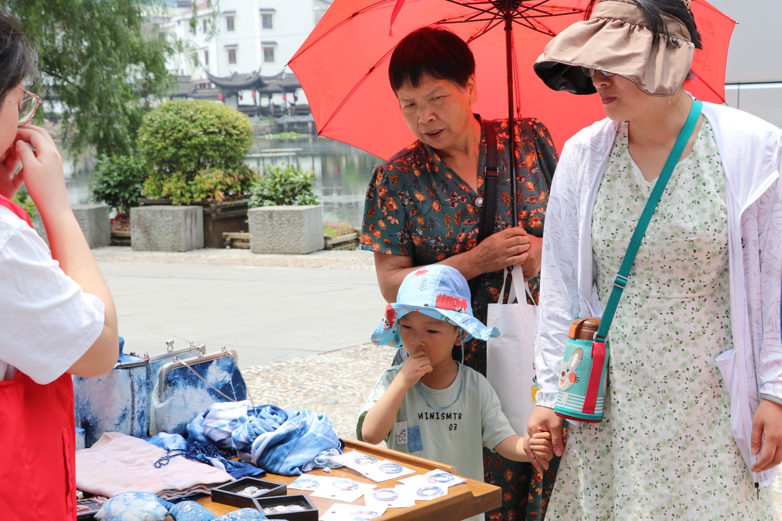扎染是一种传统的非遗技艺,艺小匠们把扎染这项非遗技艺和日常生活用品相结合,加工制作出独一无二的跨包、耳饰、挂件、方巾等产品,通过不同层次的摆设呈现在大家面前,在门口恭候“买”家们的光临……