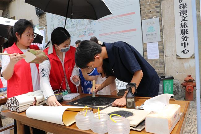 为弘扬优秀传统文化,感受和传承工匠精神,6月4日,手工艺学院学生党支部前往桐庐深澳古村开展第五届“浙艺手艺”节进乡村暨手工艺学院学生党支部6月主题党日活动,带领当地村民体验非遗手工创作的乐趣。
