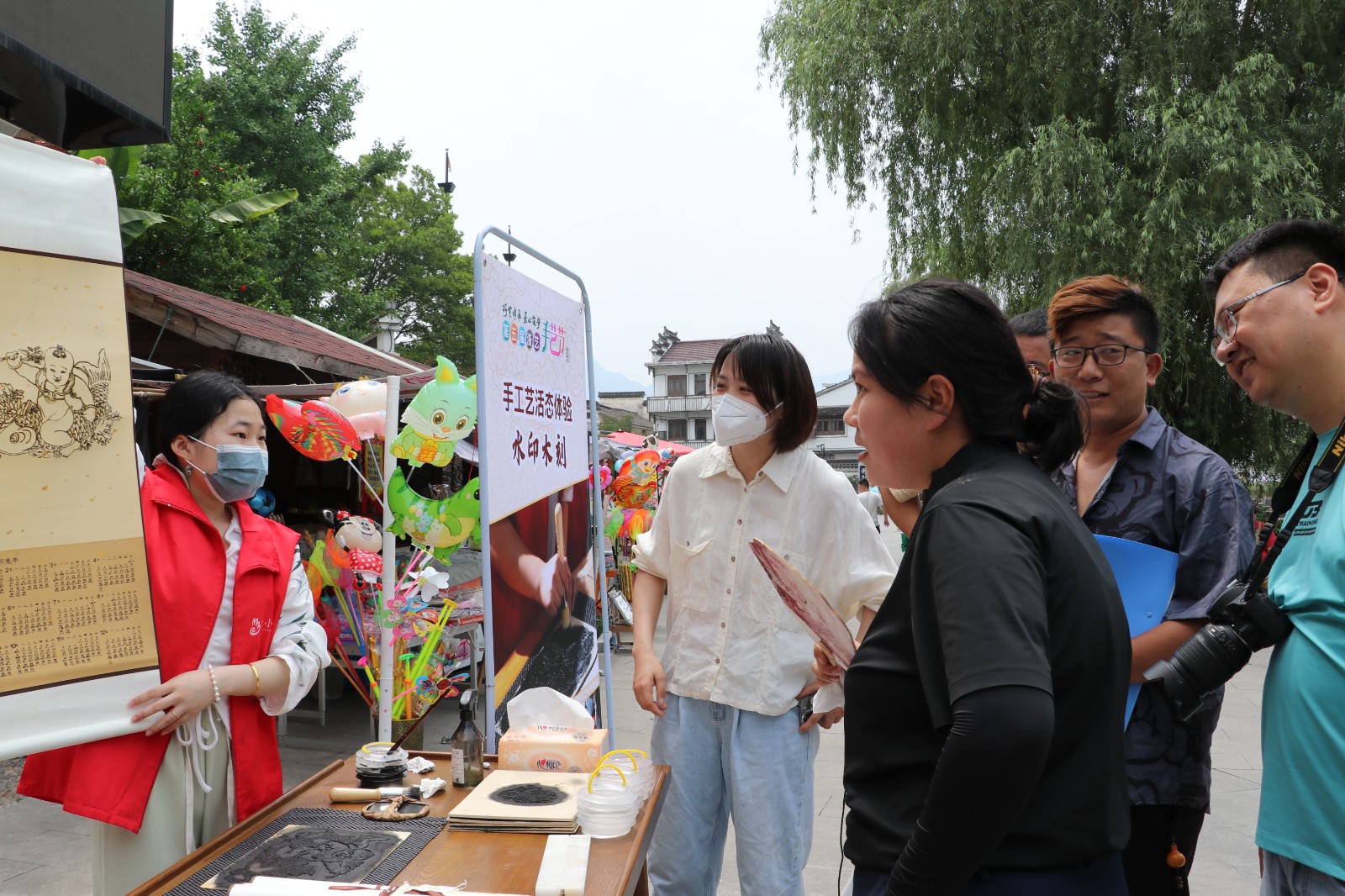 本次活动准备了水印木刻、古籍装帧和剪纸等活态体验,让村民们在轻松和谐的手工氛围里,互相交流,感受非遗传统文化。