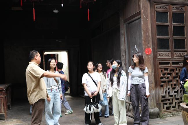 “深澳百匠艺术文化村项目”发起人宋凯带领同学们参观古村落,感受文化古村魅力。深澳古村是申屠家族的血缘村落,是桐庐一带的江南古村,因其庞大的古建筑群、独特的地下水系、深厚的宗族文化和浓郁的民俗风情而闻名。近年来,深澳村坚持以“明清古建筑群”为肌理,“地方民俗文化”为特色,“美丽田园风光”为底板,深度挖掘古村落资源,加快盘活闲置资产,突出“古风古韵”,着力打造“百匠创客街区”,探索资源转化富民之路,实现“村美”与“民富”的有机统一。