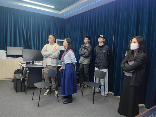 会后,一行人参观了环境艺术设计专业的“云设计虚拟仿真数字化工作室”,共同交流3D扫描设备、VR设备、OR设备在教学中的使用情况,并观看了学生的优秀作品。
