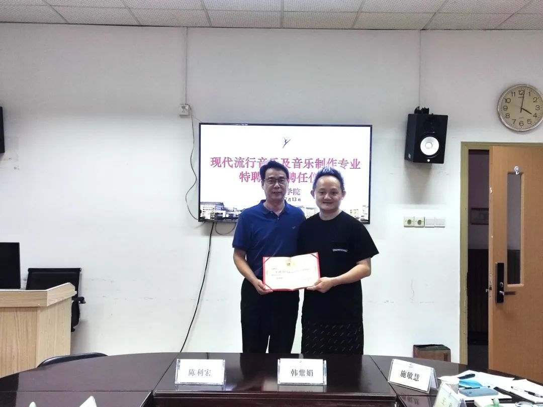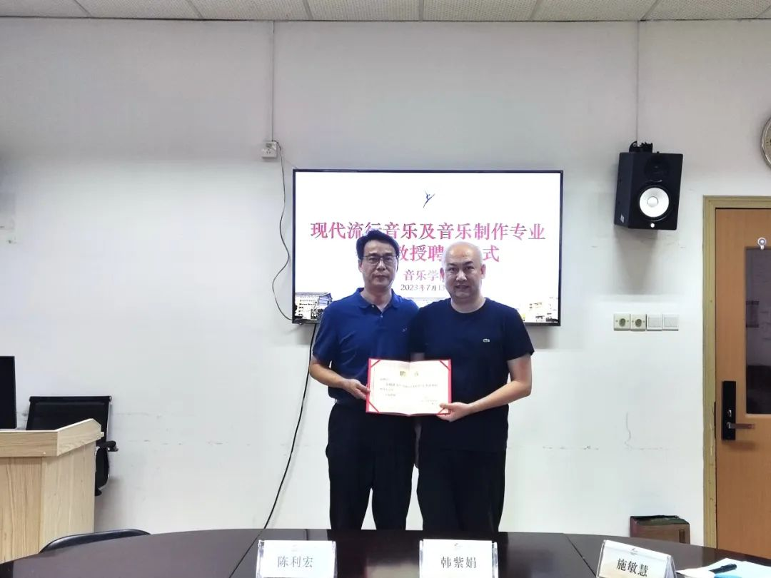 7月13日下午,音乐学院现代流行音乐及音乐制作专业特聘教授聘任仪式在3101会议室举行,聘任浙江音乐学院流行音乐系副主任王滔担任我院现代流行音乐专业特聘教授,聘任浙江音乐学院音乐工程系副教授姜超迁担任我院音乐制作专业特聘教授。音乐学院领导班子、办公室主任、流行及音乐制作相关教师代表参加聘任仪式,潘骅副院长主持仪式。