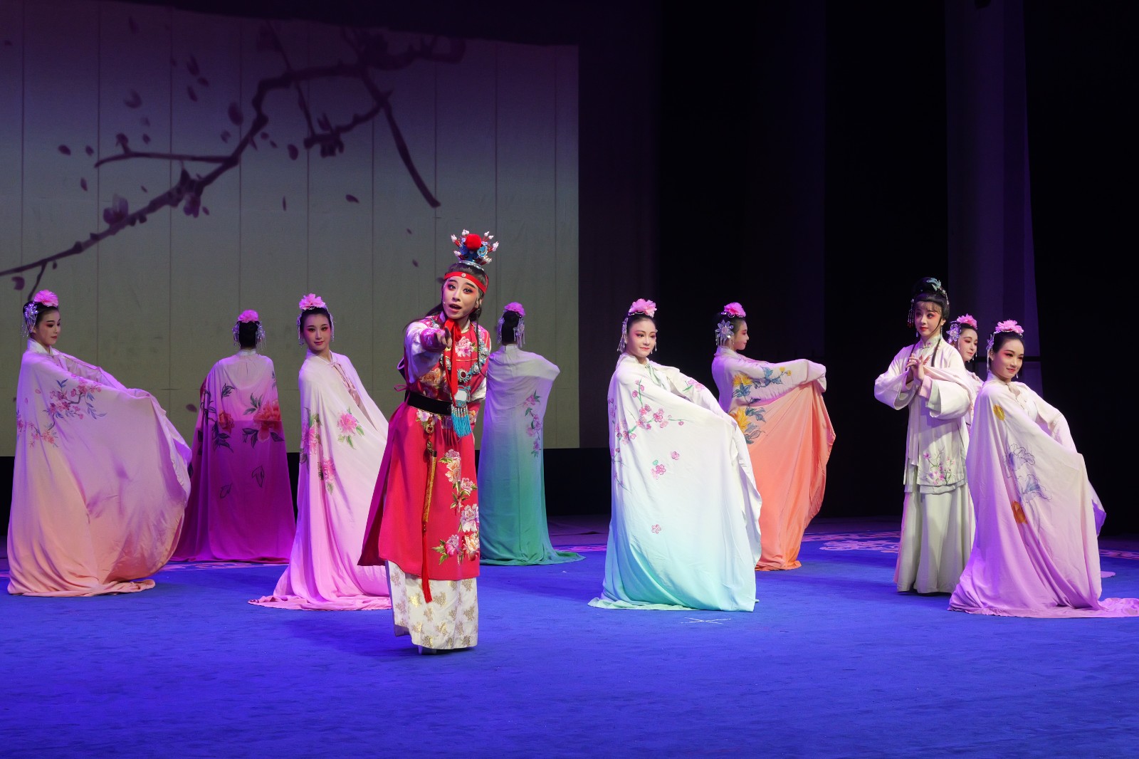 专业第一课在戏曲舞蹈《百花争妍》中缓缓拉幕,寓意梨园新声花香满园,绘就了一幅春意盎然、繁花似锦、欣欣向荣的美丽画卷。