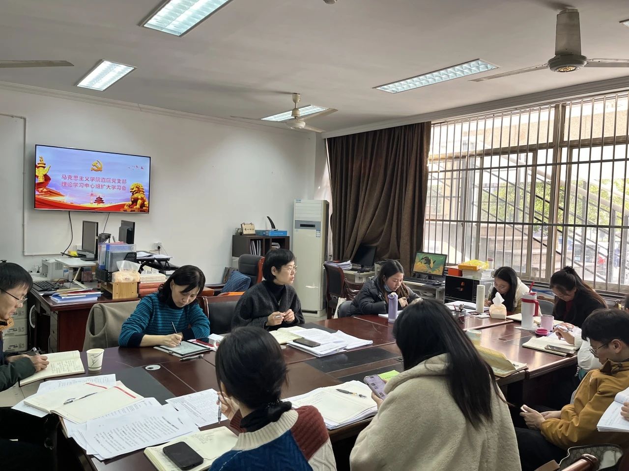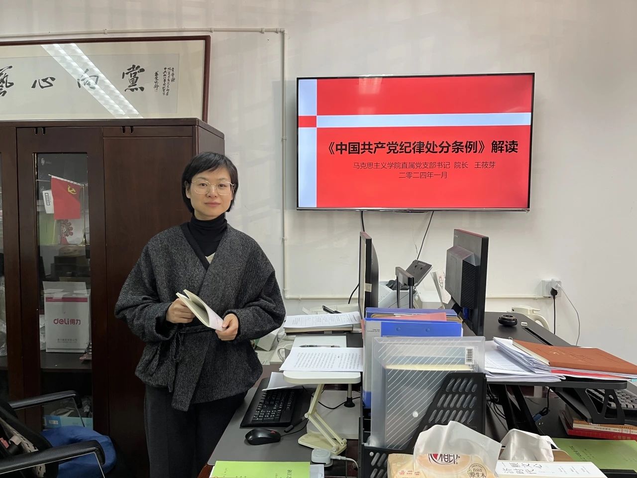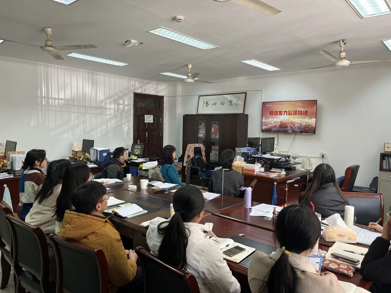 1月17日下午,马克思主义学院直属党支部开展理论学习中心组扩大学习会暨师德师风专题党课。直属党支部书记、院长王筱芽传达学习领会习近平在二十届中央纪委三次全会上发表重要讲话精神、新修订的《中国共产党纪律处分条例》,并集中观看由中央纪委国家监委宣传部与中央广播电视总台央视联合摄制的年度反腐大片《持续发力 纵深推进》。