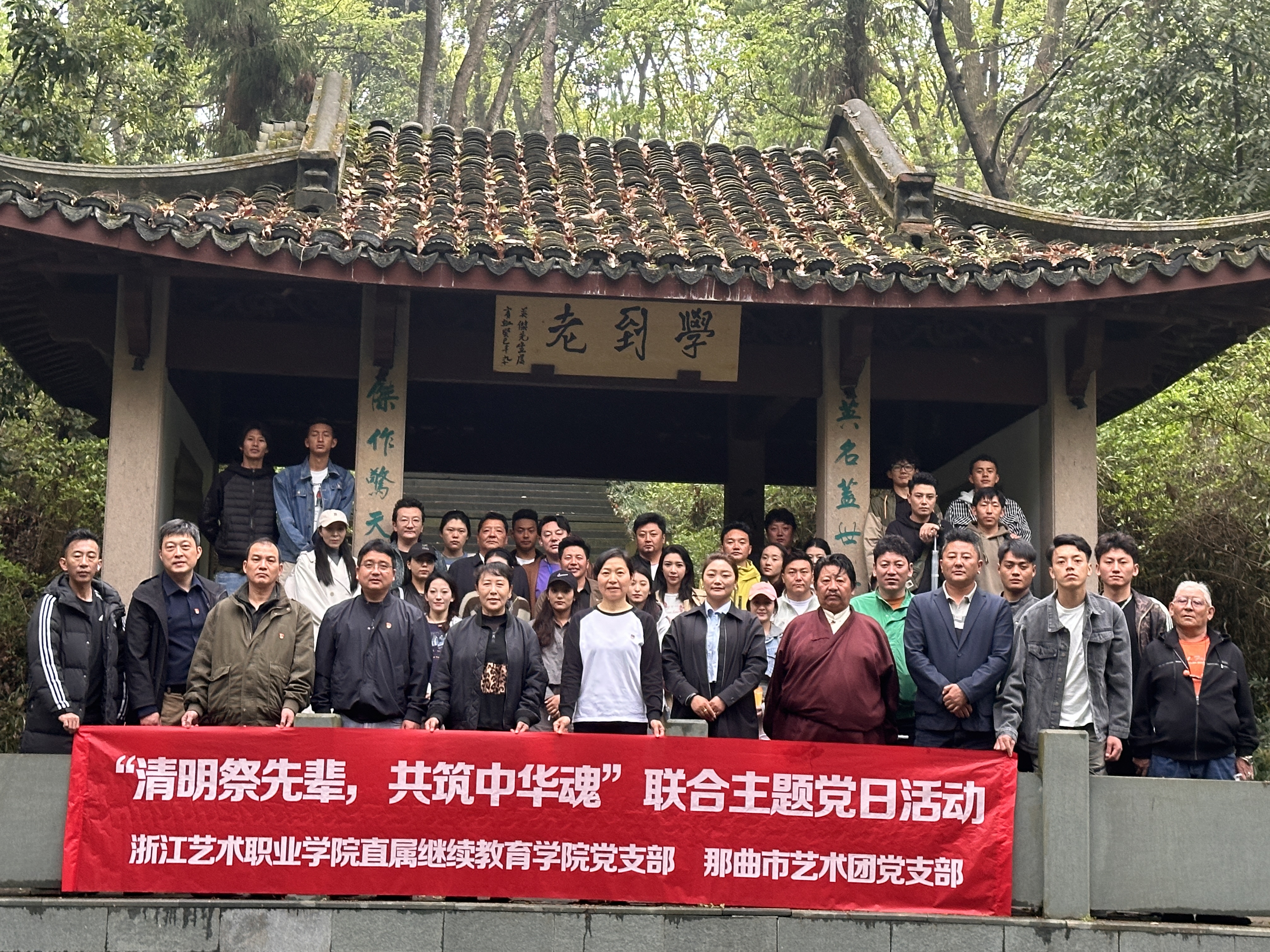 4月4日清明节,浙江艺术职业学院继续教育学院直属党支部和在杭州参加培训的那曲艺术团党支部联合开展“清明祭先辈 共筑中华魂”主题党日活动,祭扫盖叫天墓,敬献花篮,学习老一辈艺术家胸怀大志、勇于创新、活到老学到老的优良品德。