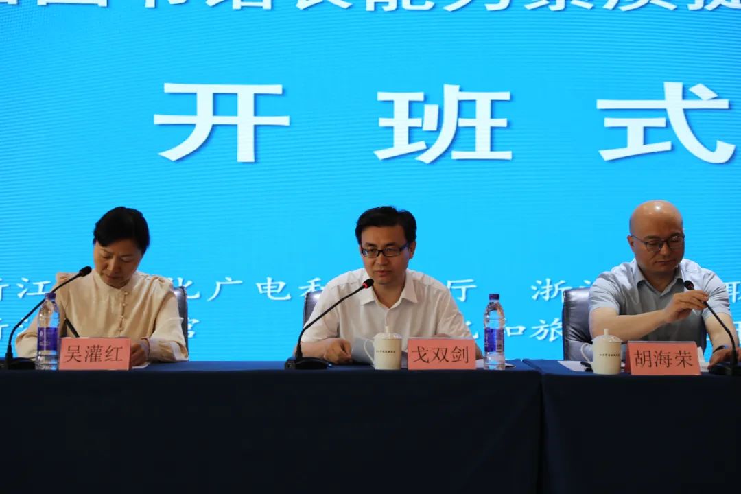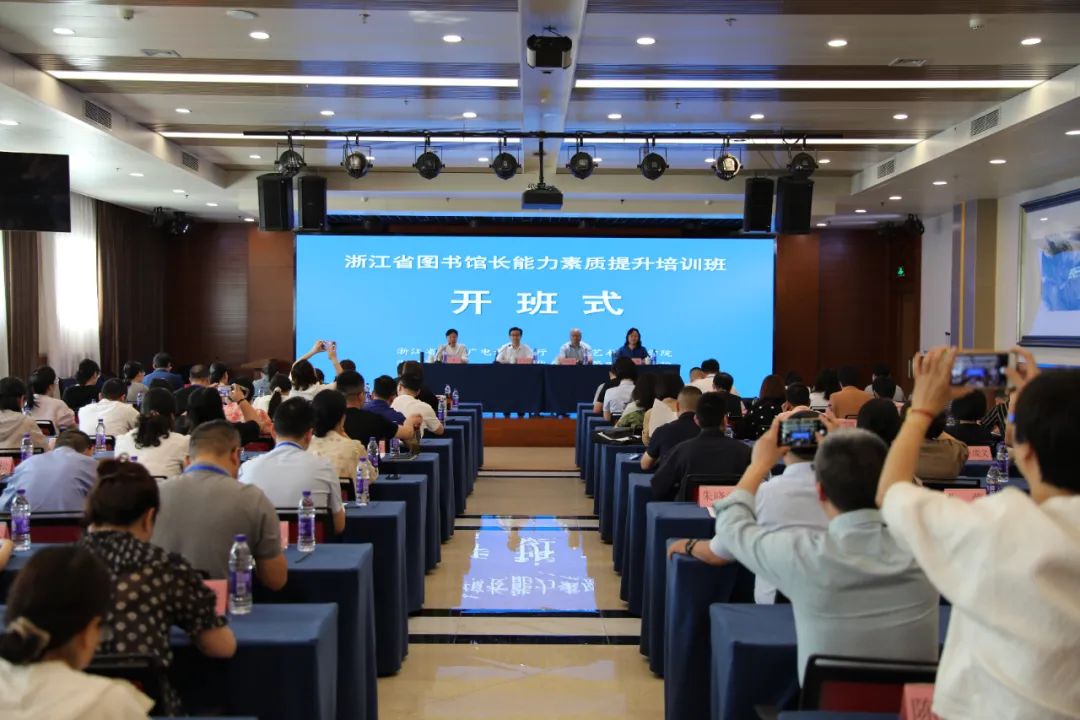 5月29日上午,浙江省图书馆长能力素质提升培训班在中央文化和旅游管理干部学院开班。培训班由浙江省文化广电和旅游厅主办,中央文化和旅游管理干部学院、浙江艺术职业学院和浙江图书馆共同承办。中央文化和旅游管理干部学院副院长戈双剑,浙江图书馆馆长、党委书记胡海荣,中央文化和旅游管理干部学院文化事业培训部主任孙法鑫、浙江艺术职业学院继续教育学院院长吴灌红出席开班式。来自全省各市、县(市、区)的100位图书馆长、副馆长参加了开班式。