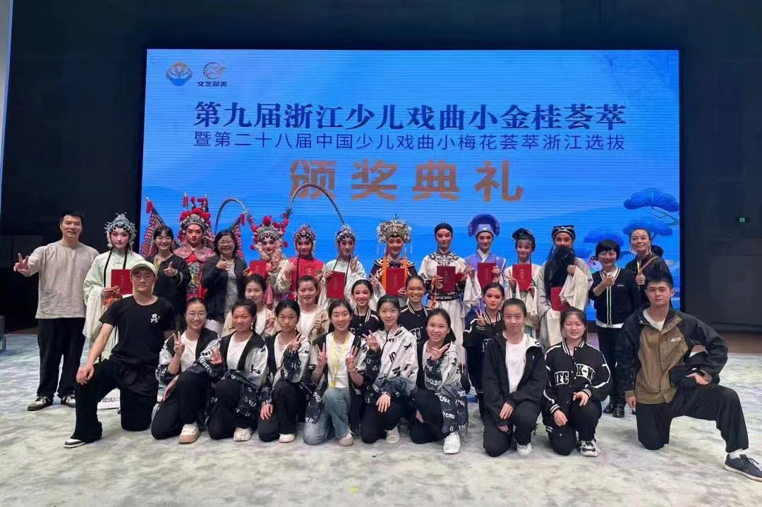 5月11日-12日,第九届浙江少儿戏曲小金桂荟萃暨第二十八届中国少儿戏曲小梅花荟萃浙江选拔在桐乡举行,我校戏曲学院选派10名选手参赛,包揽了专业组小金桂所有金花奖项,取得“大满贯”。