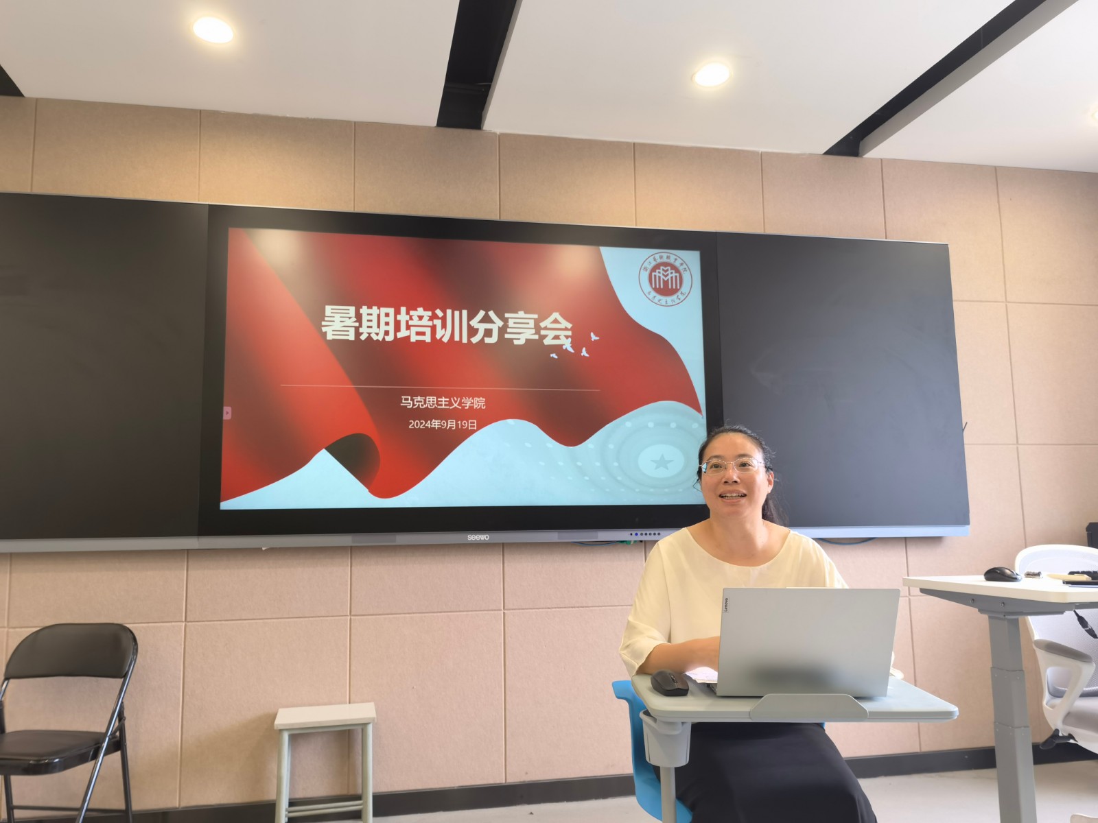 为贯彻落实习近平总书记对学校思政课建设的重要指示和新时代学校思政课建设推进会精神,守正创新推动思政课建设内涵式发展,进一步提升全体思政教师的教育教学能力,9月19日,马克思主义学院在8707教室举办了暑期培训分享交流会,共享思政课教师暑期学习的经验成果,全体马院教师参加。