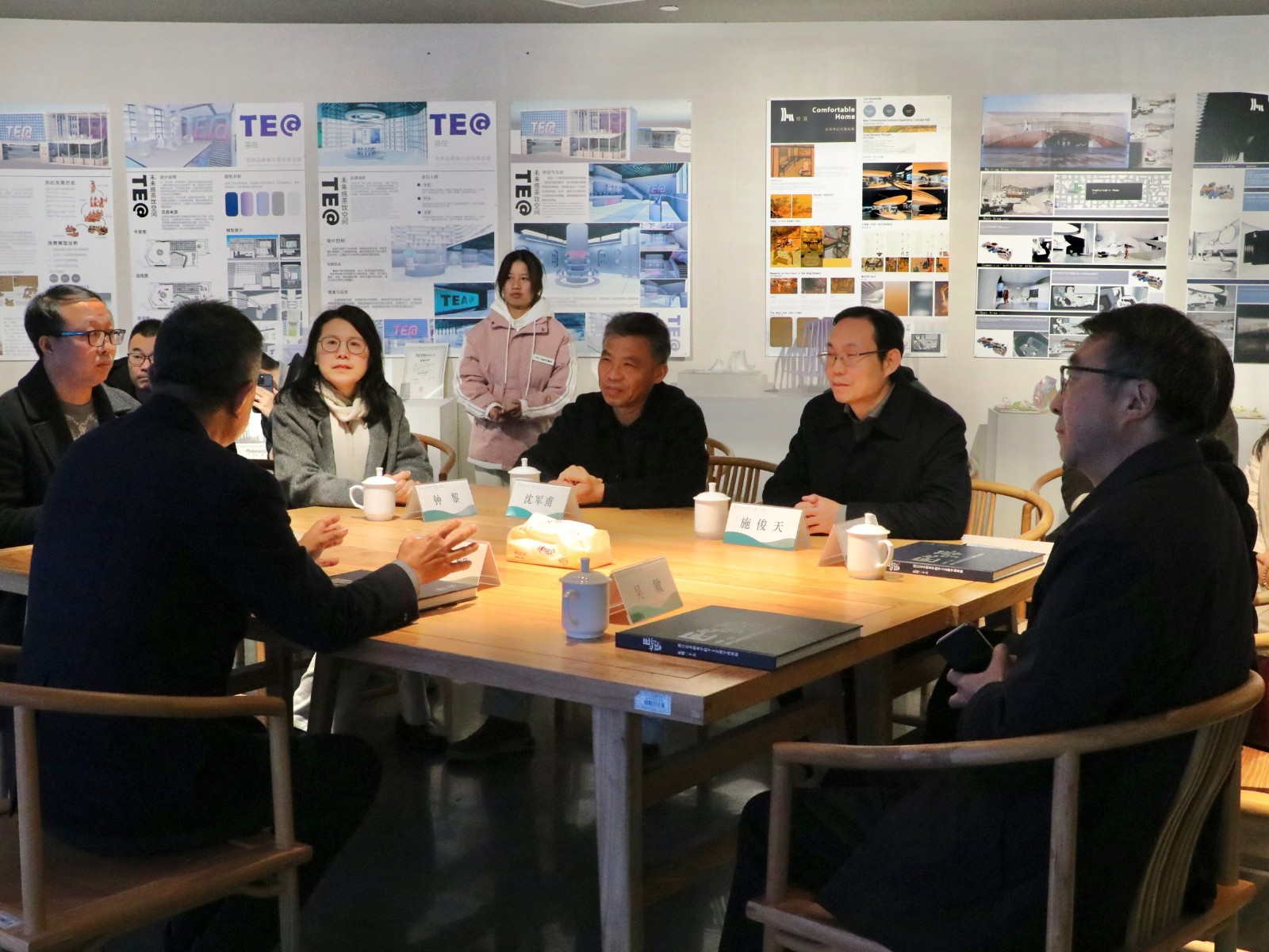 与会嘉宾先参观了“古艺新续”——手工艺校企合作成果展,手工艺学院党总支书记钟黎介绍了展览区域与学生作品,充分展现了学校深厚的文化底蕴与独特的教育资源。此次展示聚焦学校在传统文化传承、现代教育创新实践等方面的卓越成就,为即将揭牌的首批中国游学基地增添了丰富的内涵与背景铺垫。