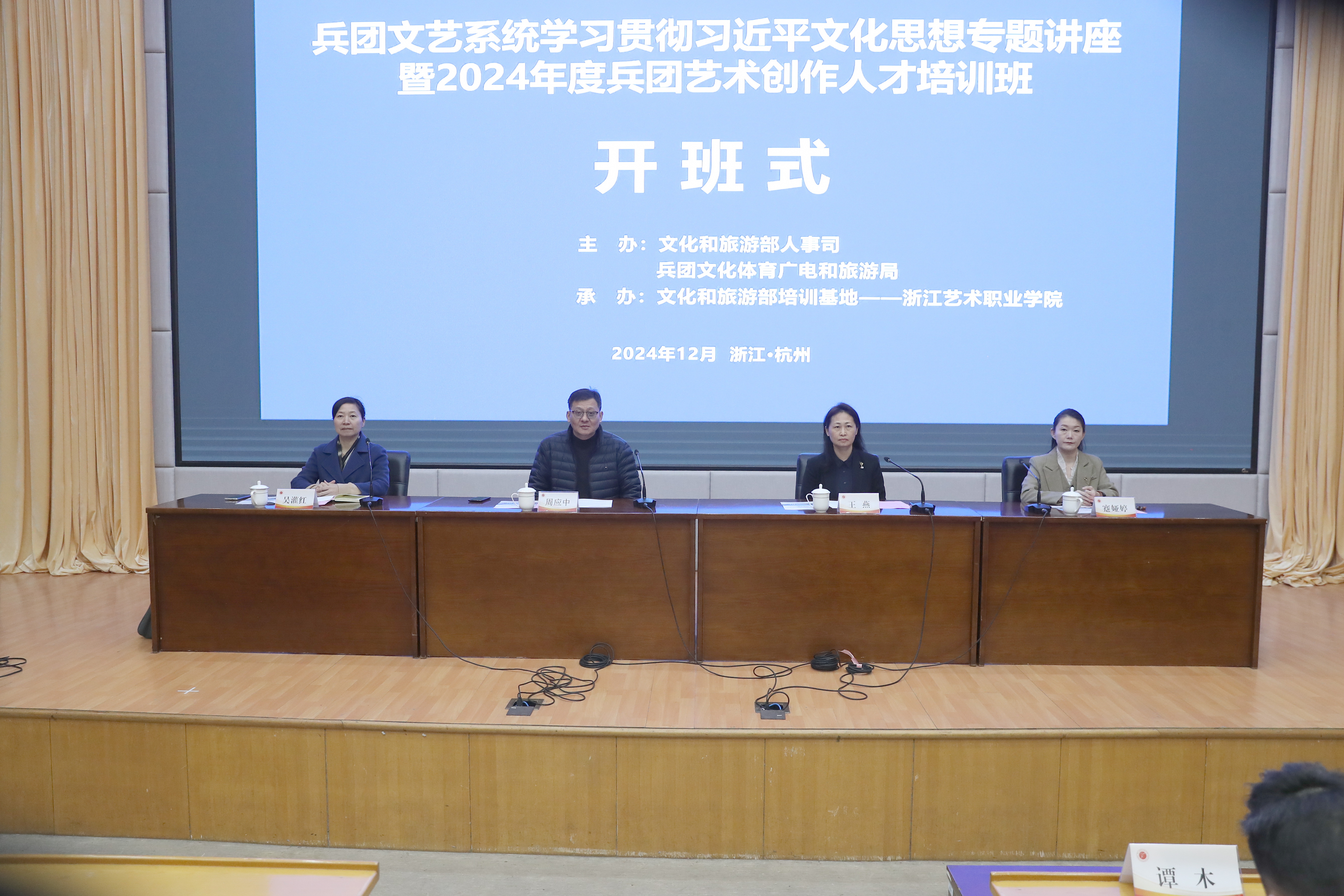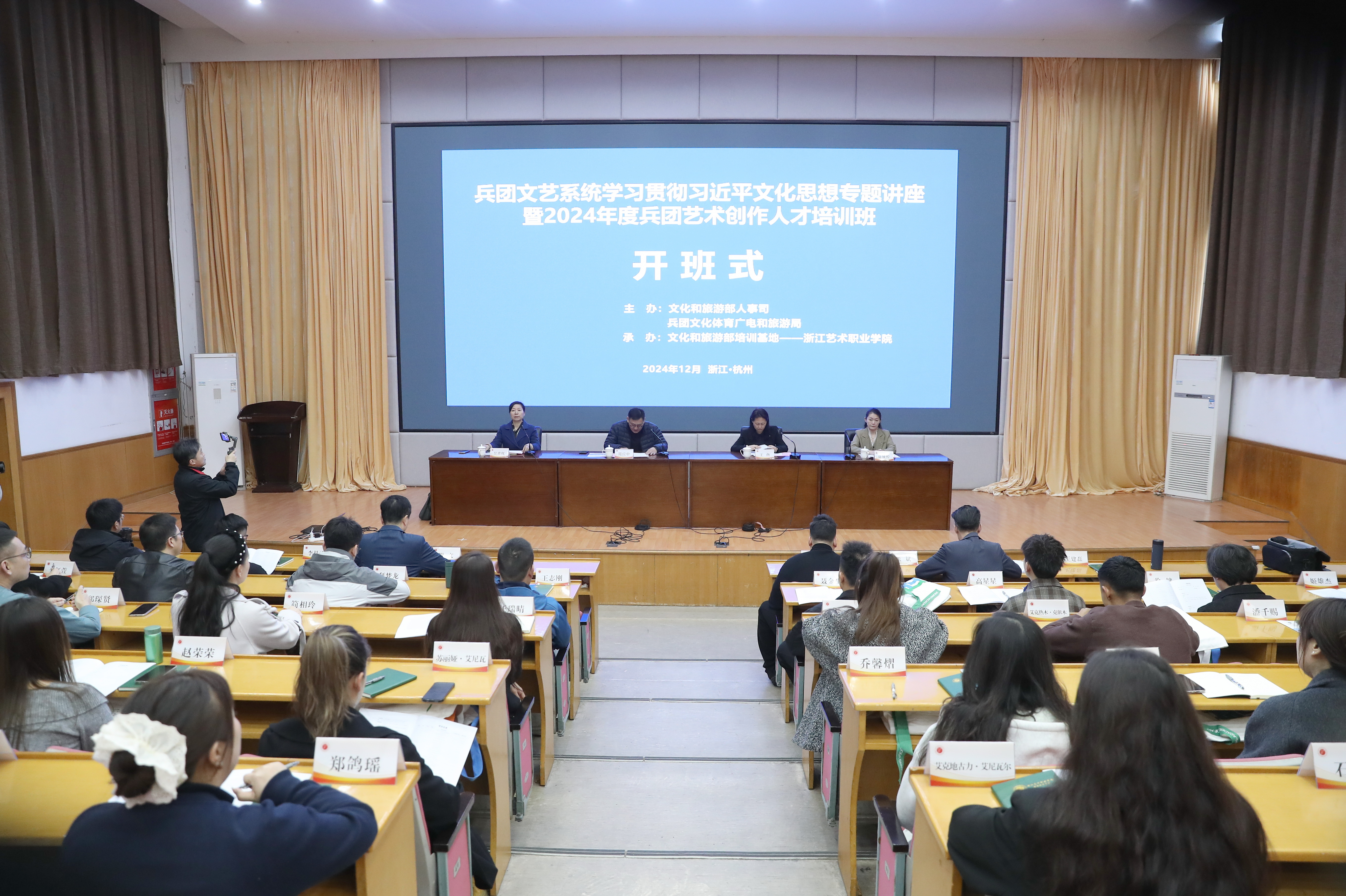 本次培训由文化和旅游部人事司、新疆生产建设兵团文化体育广电和旅游局主办,文化和旅游部培训基地——浙江艺术职业学院承办。培训历时6天,来自新疆各师文艺团体、文化馆(综合文化活动中心)负责人及艺术创作骨干,兵团文化体育广电和旅游局直属事业单位负责人及艺术创作骨干近40人参训。浙艺对本次培训高度重视,立足兵团艺术创作需求,精心筹划、研究课程,围绕学习宣传贯彻习近平文化思想和党的二十届三中全会精神、深化文化体制改革、艺术作品传播推广以及各类舞台艺术创作等内容,采用“专题讲座+现场教学+分组讨论+汇报展示”的方式进行,整体安排时间紧凑、内容丰富,为学员们提供了一个深化认识、开拓视野、交流切磋的平台。