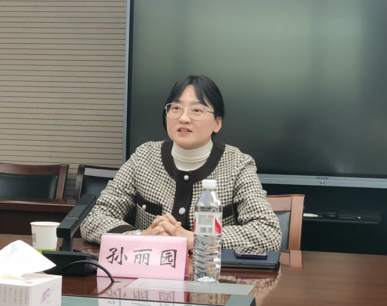 座谈会上,孙丽园对我校一行的来访表示热烈欢迎,并简要介绍了学校的基本情况、办学特色以及在社会服务等方面所取得的成效。她表示,学校始终坚持以学生为中心,注重培养学生的创新精神和实践能力,努力为社会输送高素质人才,希望未来与兄弟院校加强合作,共同探索教育创新路径。