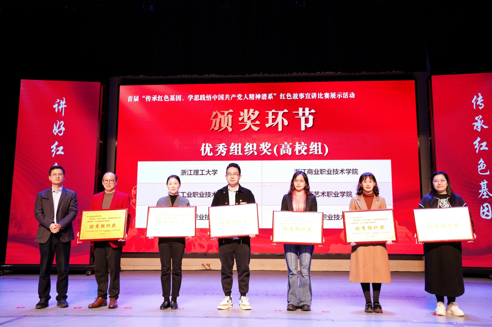 3月28日,首届“传承红色基因、学思践悟中国共产党人精神谱系”红色故事宣讲比赛颁奖典礼暨优秀作品现场展示活动在浙江商业职业技术学院举行。来自浙江省内外69所大中小学的师生代表参加活动。