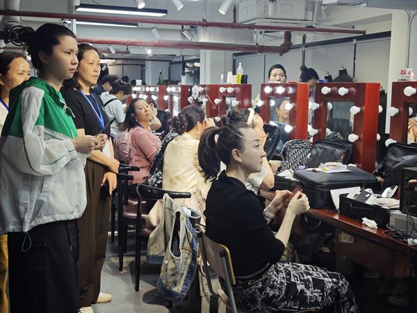 在5月13日的课堂上,王婧、李秀雯等老师为服装、化妆带来了化妆技巧与实践课程,以讲座与实际演示的形式,为培训班学员们进行“现场操练”。国家级非物质文化遗产项目小热昏传承人、一级演员周志华为曲艺培训班带来了第一场专业课讲座。曲艺学员熟悉的开心茶馆“老开心”周志华讲述自己多年曲艺经验,进行现场表演教学并与学员互动,向学员们阐述说唱艺术的基本功。
