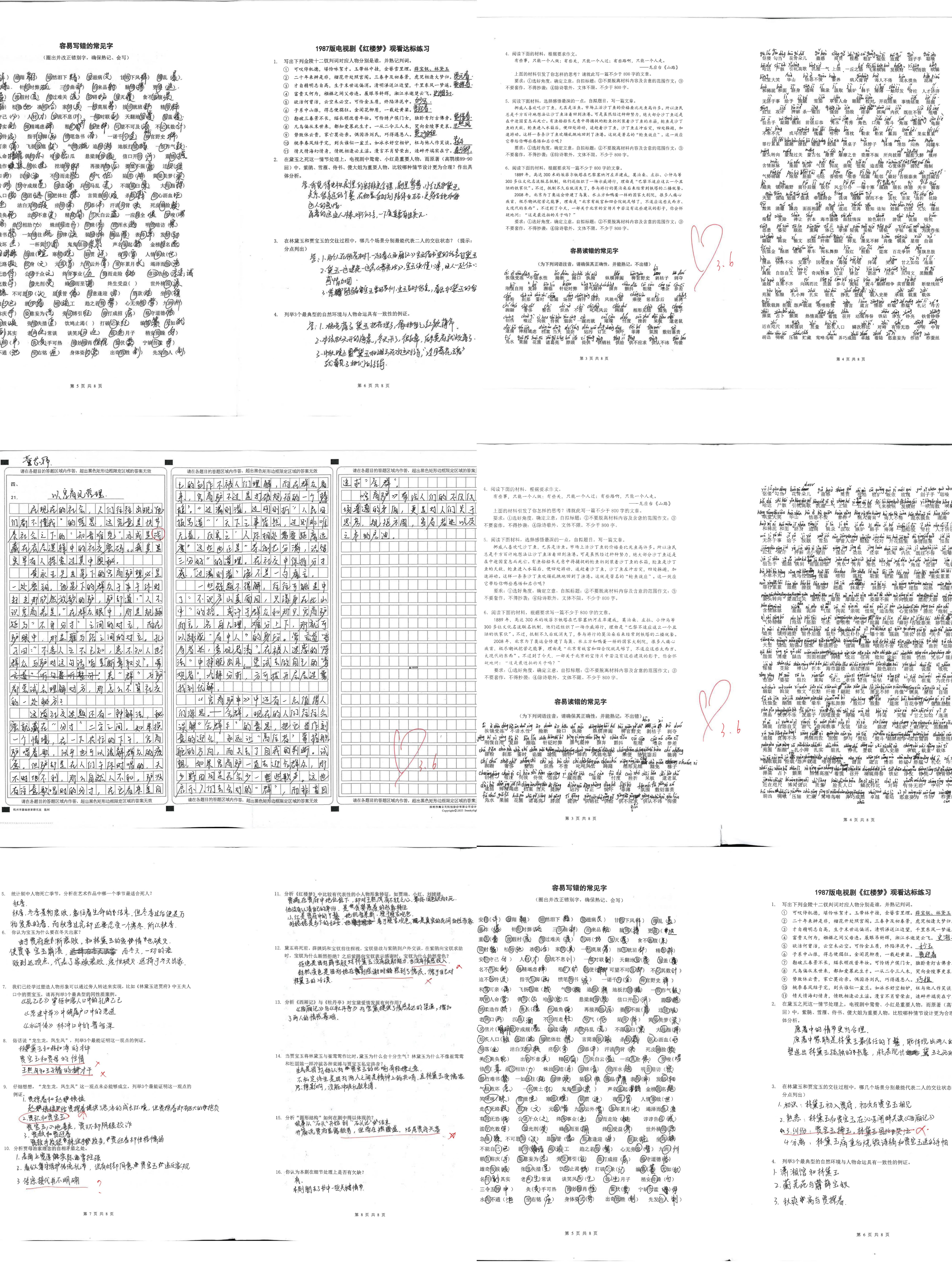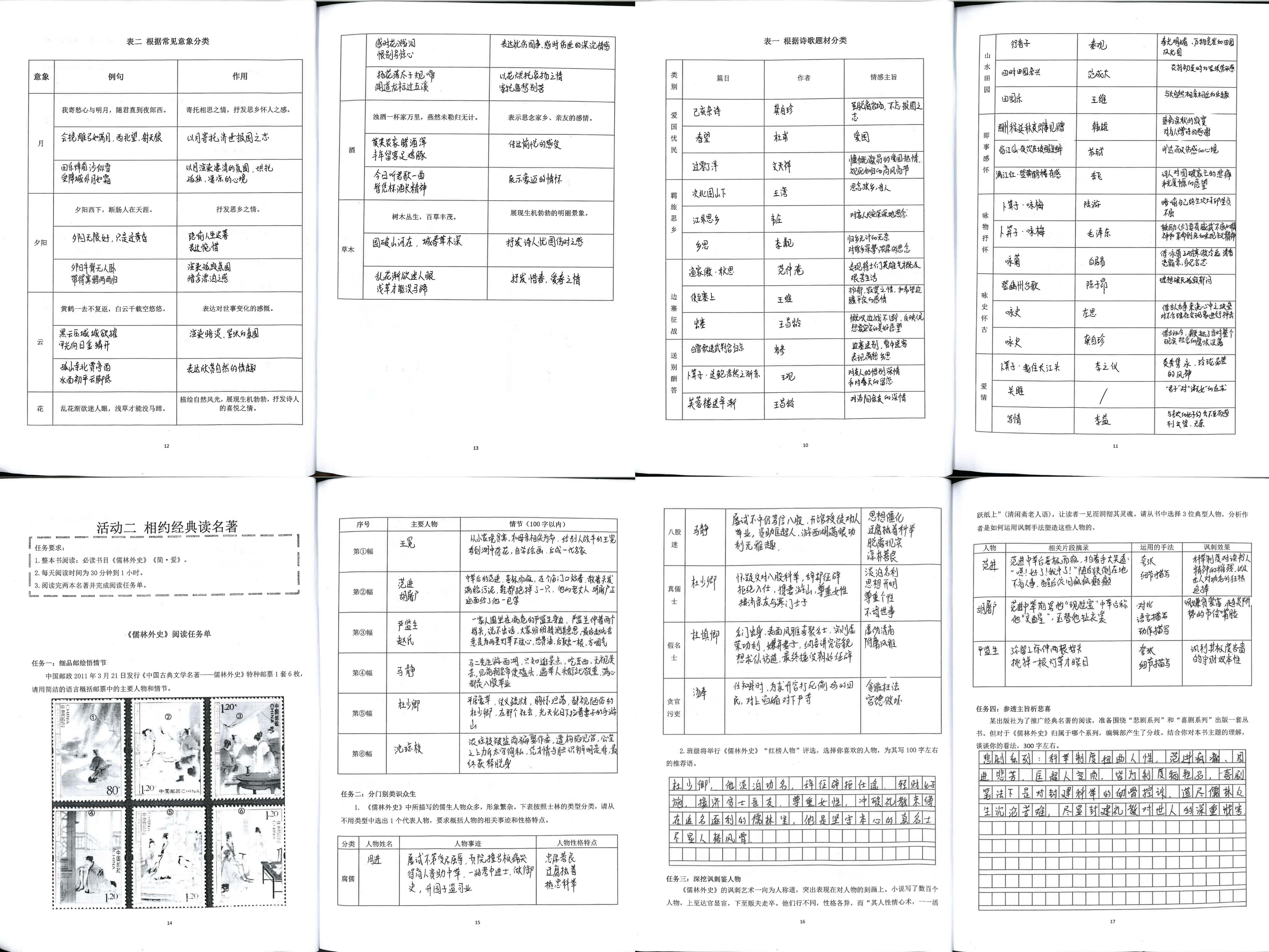 侧重习作练笔与深度阅读训练,优秀作品文笔流畅、立意深刻,阅读笔记批注详实,部分优质作业同步配有家校批阅痕迹,尽显扎实语文素养。