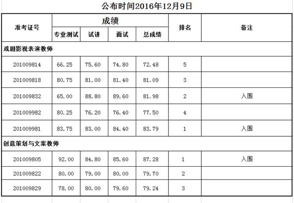 【招聘】浙江艺术职业学院2016年特殊专业技术岗位公开招聘考试结果