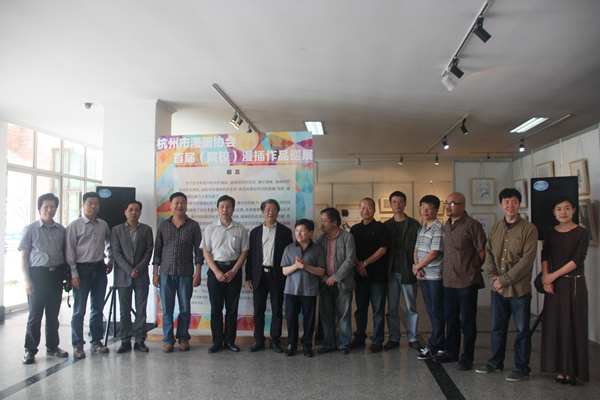 5月15日下午,由杭州市漫画协会主办、浙江艺术职业学院承办的首届(院校)漫插画巡展开幕式在浙江艺术职业学院四号楼大厅举行。杭州文化广电新闻出版局社会文化处张红华、杭州动漫博物馆王媛、杭州市漫画协会会长章宁平、资深动画导演张景源、浙艺院宣传教育处处长马向东、美术系副主任(主持工作)杜晨鹰、美术系副主任孙煜珑及其他承办院校的相关专家出席开幕式。