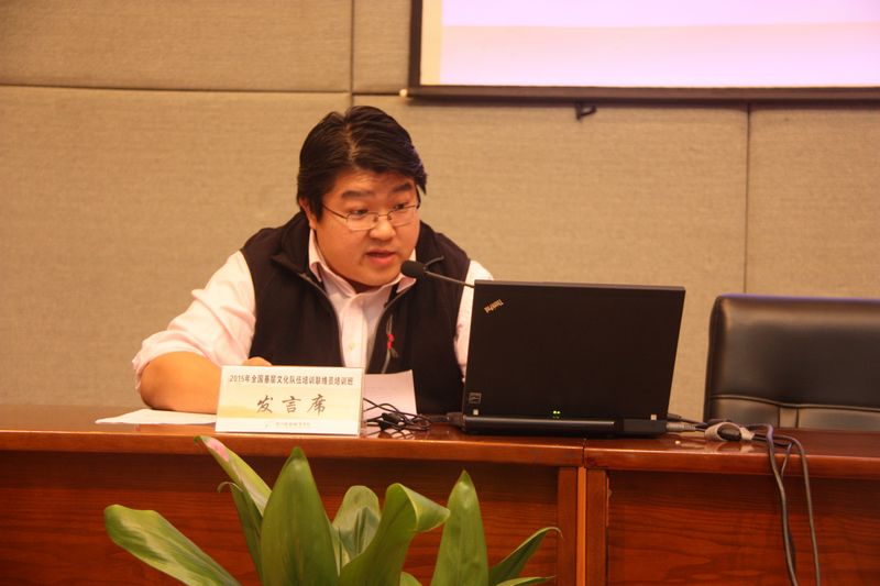 文化部公共文化司副司长周广莲主持开班仪式并讲话,浙江艺术职业学院党委书记林国荣致欢迎词,浙江省文化厅副厅长柳河、中央文化管理干部学院副院长段周武分别讲话。