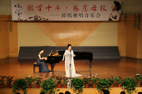 5月26日晚,浙江艺术职业学院校友邱嫣荣归母校,在音乐厅举办“嫣与江南——回首十年感恩母校”邱嫣独唱音乐会,唱响从艺之歌、感恩之歌。中国人民解放军海军军乐团副团长兼艺术总监王慧星、原省音协主席晓其、我院领导和老领导以及音乐界专家、音乐系师生等到场聆听音乐会。国家一级演员、浙江省声乐辅导团副团长胡素银主持音乐会。