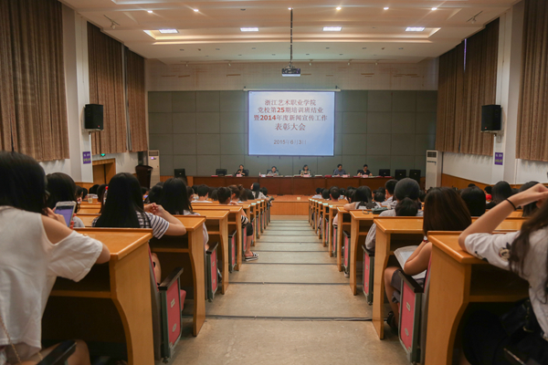 6月3日晚,浙江艺术职业学院党校第25期培训班结业暨2014年度新闻宣传工作表彰大会在图信中心报告厅举行。院党委副书记、党校副校长黄杭娟,基础教学部副主任(主持工作)史长虹,院团委书记、音乐系党总支副书记章蔓丽,组织人事处副处长,各系党总支副书记、党校教研室教师、班主任和本期培训班学员以及学生记者团全体成员等出席仪式。院党委宣传教育处处长马向东主持大会。