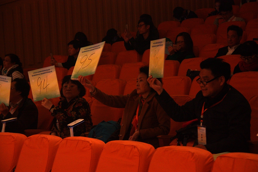 在经过不到两小时的休整之后,第二轮比赛于晚上六点正式开始。此轮比赛内容为“专业拓展能力(合唱排练)考查”,选手抽签决定排练曲目(均为二声部合唱歌曲选段),在制定场所独立准备1小时,而后在赛场阐述排练构思并组织合唱队员排练15分钟,重点考查选手对声乐作品的理解和分析能力、排练指挥等方面的能力以及综合专业素养。合唱队员全部来自我院音乐系的学生,在紧张的大赛现场有如一抹鲜艳的亮色点缀了舞台,温婉的歌声恰到好处地配合了选手的现场发挥。各参赛选手在此轮比赛中也可谓是拼尽全力,将自己除了演唱技能之外的另一面才艺充分展露给现场评审和观众。按照“专业拓展能力(合唱排练)考查”满分100分折合总成绩的15%评分权重,再结合第一轮的比赛成绩,选手们的最终参赛成绩尘埃落定。最终,来自浙江艺术职业学院的选手王璟(指导教师:郭义江)、应梦霞(指导教师:钱思舒)、李丽包揽前三名(指导教师:钱思舒),浙江纺织服装职业技术学院的潘潜峰、浙江横店影视职业学院的林雯雯分获第四、第五名。