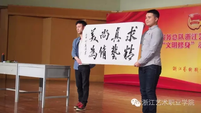 仪式中,院党委副书记黄杭娟讲话。她希望浙艺学子能够志存高远,坚定理想信念;明德修身,锤炼高尚品德;勤于实践,练就过硬本领。同时,黄杭娟也指出,团学工作常做常新,各级团学干部特别是学生党员,要以“文明修身”的标准来要求自己、对照自己,勤于学习,提升修养,做学习的先行者、创新的示范者、正能量的传播者。