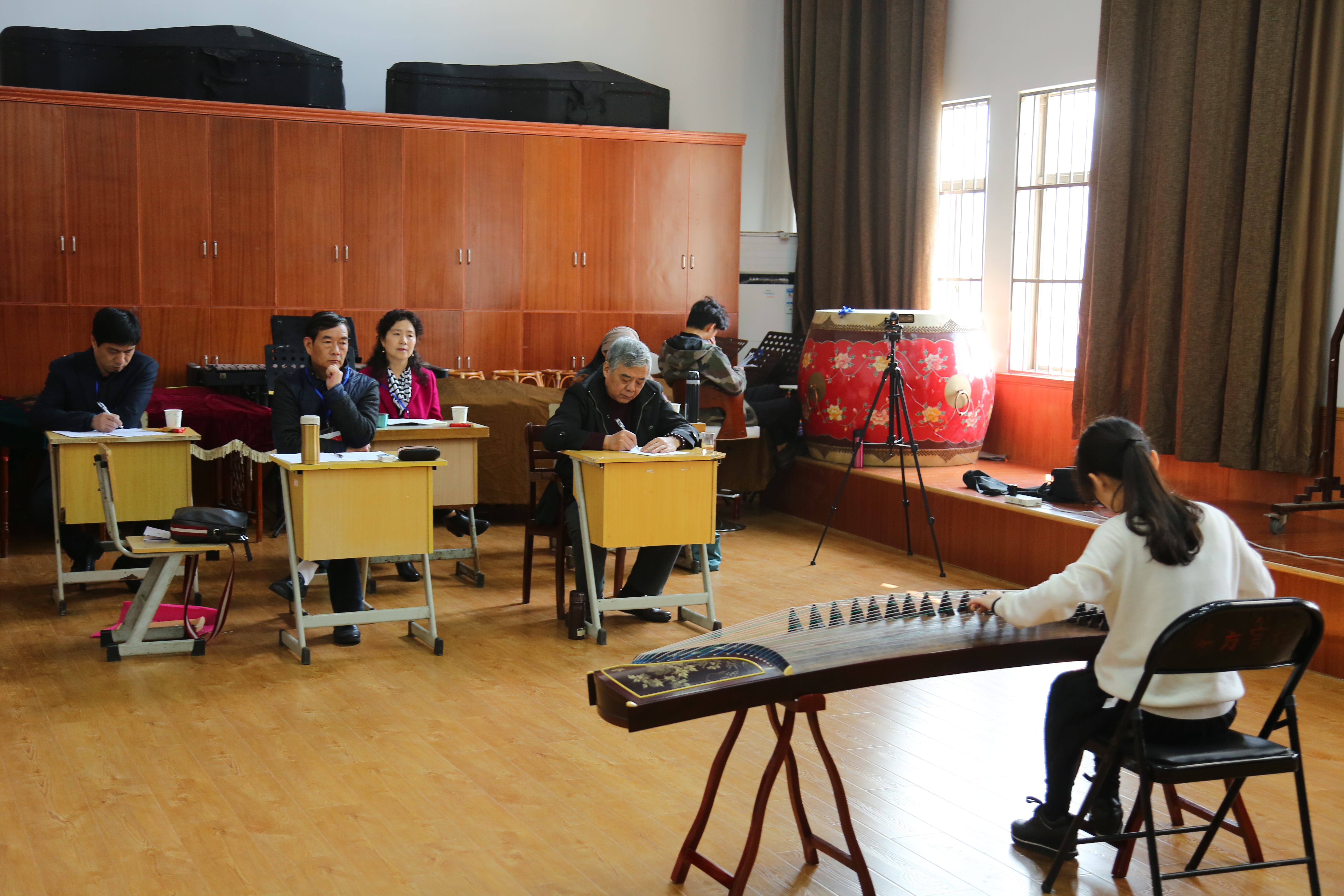 音乐系的专业考试,是先闻其声再见其人。楼道里候考的考生都在调试乐器打开嗓子,回荡着各种小声哼唱或弹拨乐器的声音,虽然没有考场里的洪亮高亢,但也有条不紊地准备着。歌舞表演专业更是各怀才艺,唱歌剧、民歌、美声的,跳民族舞、现代舞的,让人目不暇接。声乐考场外考生排着队时还在复习手中乐谱。