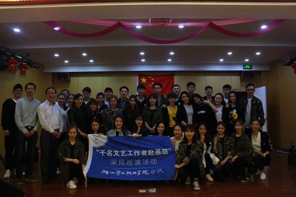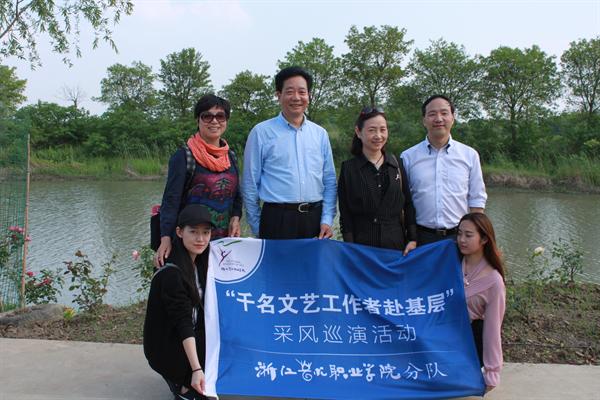 本报讯(记者 吕志辉)为深入贯彻落实省委省政府全面剿灭劣Ⅴ类水的战略部署,充分发挥浙艺师生的专业优势,积极投身治水工作,我院积极参与“千名文艺工作者赴基层”采风巡演活动,5月5日,院长黄杭娟、副院长夏开堂率浙江艺术职业学院分队赴长兴林城镇北汤村采风,为村民作专题文艺巡演。长兴县委常委、宣传部长王庆忠、副部长刘月琴和林城镇及北汤村干部等热情接待我院师生,并与黄杭娟、夏开堂和师生们在治水现场进行交流。