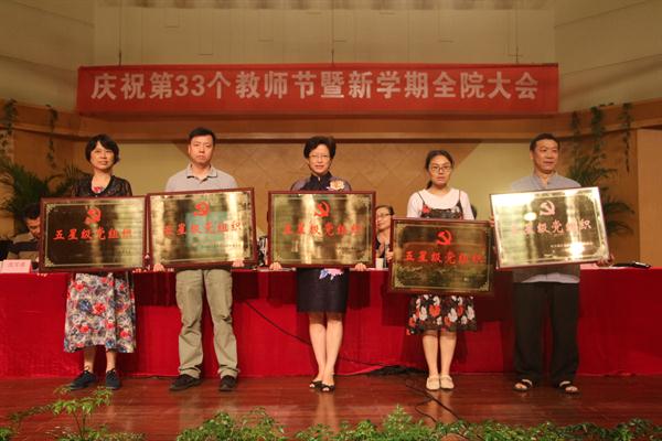 党委书记朱海闵作了讲话。她表示,当前,正值全国上下喜迎党的十九大胜利召开,这一特殊时代背景赋予今年的教师节特殊的意义和宏大的主题:“迎接党的十九大,做好学生引路人。”这一主题的深刻内涵在于:根本在人才,根基在教育,关键是要有一支高水平的教师队伍。就这个问题,朱海闵表示:一要强化教师队伍的思想政治建设;二要提升教师队伍建设的质量水平。必须拉高师德建设的标杆、教学能力的标杆和育人质量的标杆;三要完善教师队伍建设的政策措施。要抓项目落地,抓措施落实,抓服务落细。就今年下半年工作,她强调三项重点工作:一是要全力做好校园安全稳定工作,确保意识形态安全、文化阵地安全、网络信息安全、生产安全,为党的十九大召开营造良好环境;二是要全力配合做好省委巡视及整改工作;三是要全力推进“两学一做”学习教育常态化制度化。