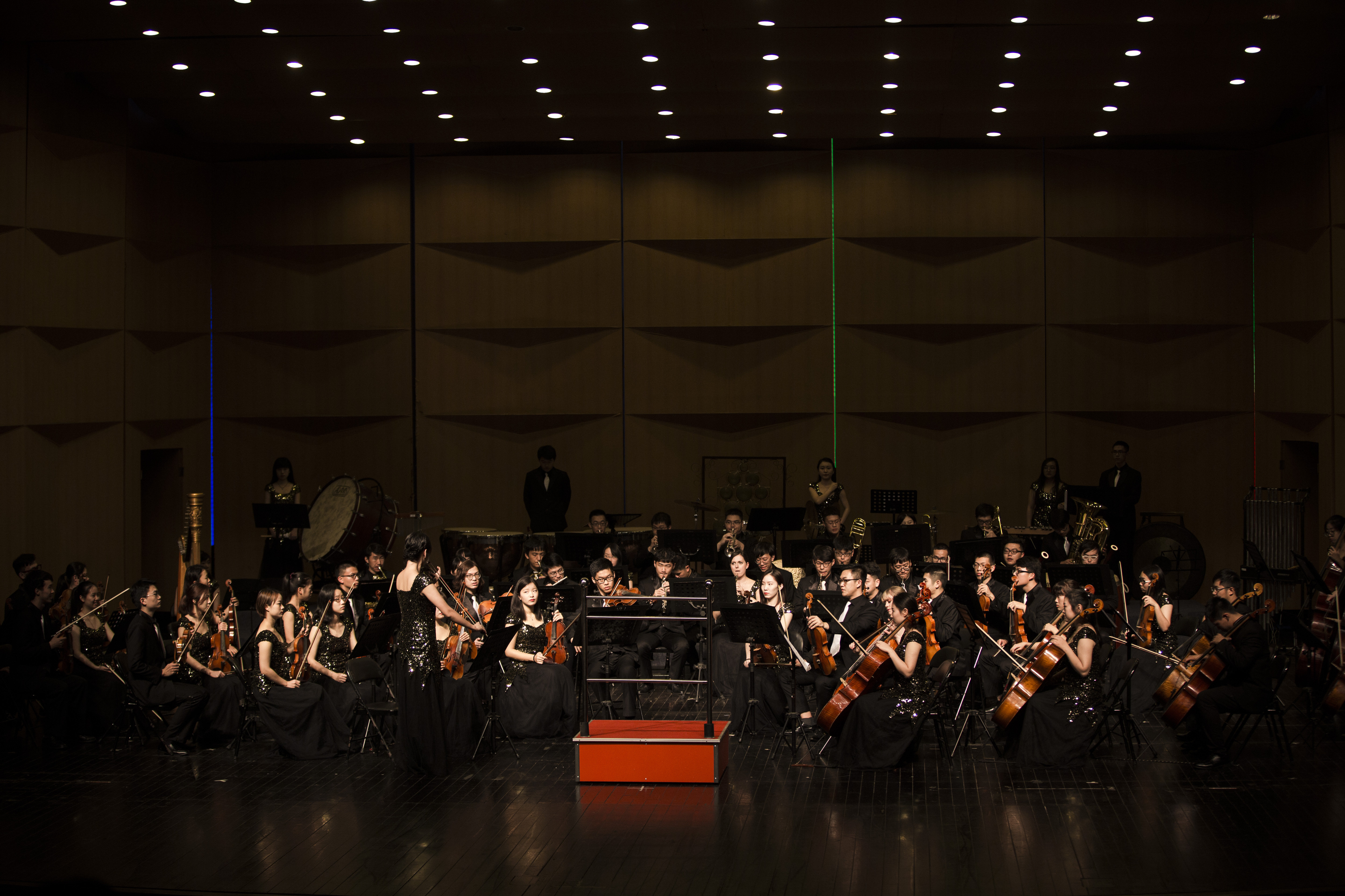 “好!好!”这是著名指挥家朱晓谷,对浙艺学子今晚演出的《治水令》的肯定。朱晓谷教授是《治水令》的曲作者,他解析到,《治水令》分为“灾”、“难”、“治”、“庆”四大部分,“灾”与“庆”是本曲最精彩部分,先苦后乐的对比拉起了高潮。演奏中,观众们凝神聆听,置身其中。《走西口》将细细的思愁化作乐符,激起现场观众的相思之情。打击乐三重奏《Trio-Per-Uno》则以热情奔放的节奏律动征服观众,不少观众情不自禁地随节奏而摆动。浙江警察学院青兰合唱团团长刘丁丹为浙艺带来的演出点赞,她说:“通过专业学习的乐团表现得确实很完美精湛,每一个音节都很顺畅,浙艺的音乐值得点赞。”