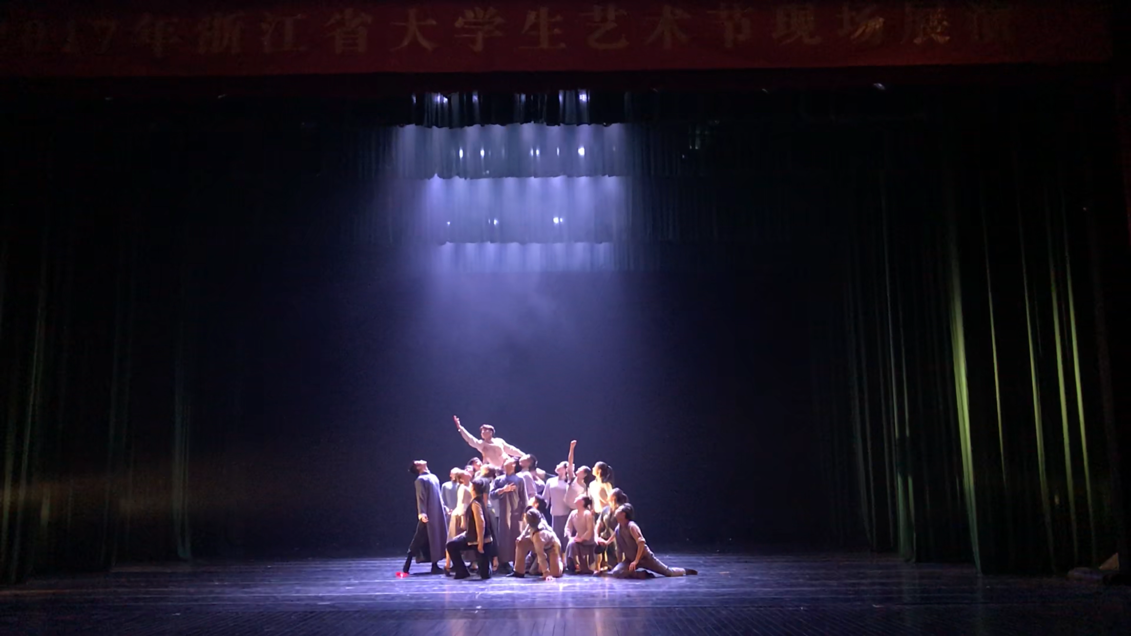 群舞《定海血壁》(编导:曹晨霄)、群舞《花鼓声响花开处》(编导:包峥剡)二部风格迥异的作品荣获舞蹈类银奖。“风萧萧兮易水寒,壮士一去兮不复返”,《定海血壁》以第一次鸦片战争中的定海保卫战为历史背景,表达了壮士们誓死保卫国家土地宁死不屈的精神,舞蹈系的男生们用一颗热血沸腾的心出色演绎了这样一部令人振奋的群舞。在此之前,该舞蹈曾荣获2017首届“浙江风格 江南舞韵”作品展演“十佳作品(综合最高奖)”奖,也在2017浙江省大学生艺术节上有过精彩展示,是今年浙艺力推的优秀舞蹈作品之一。与《定海血壁》所展现出来的铮铮侠骨、男儿本色风格截然不同的是另一部获得银奖的作品——女子群舞《花鼓声响花开处》。花鼓声里的小江南,小女儿情的舞蹈风,透过江南烟雨的水乡柔情灵动地流淌出来,赢得了评委的认可和点赞。该舞蹈作为在2017首届“浙江风格 江南舞韵”作品展演中收获“作品表演奖”、“作品编排奖”两枚单项奖的特色之作,曾登上浙江省人民大会堂的舞台献演于“浙静交好,山高水长——庆祝浙江•静冈结好35周年纪念活动”文艺晚会,向省委领导和日本友人带去浙艺的祝福。
